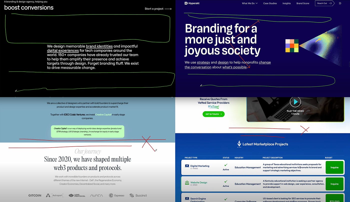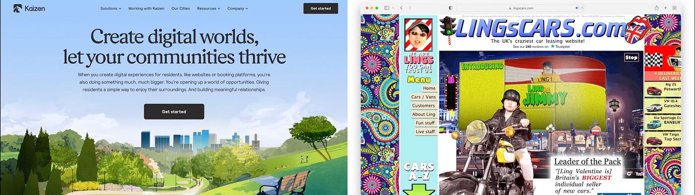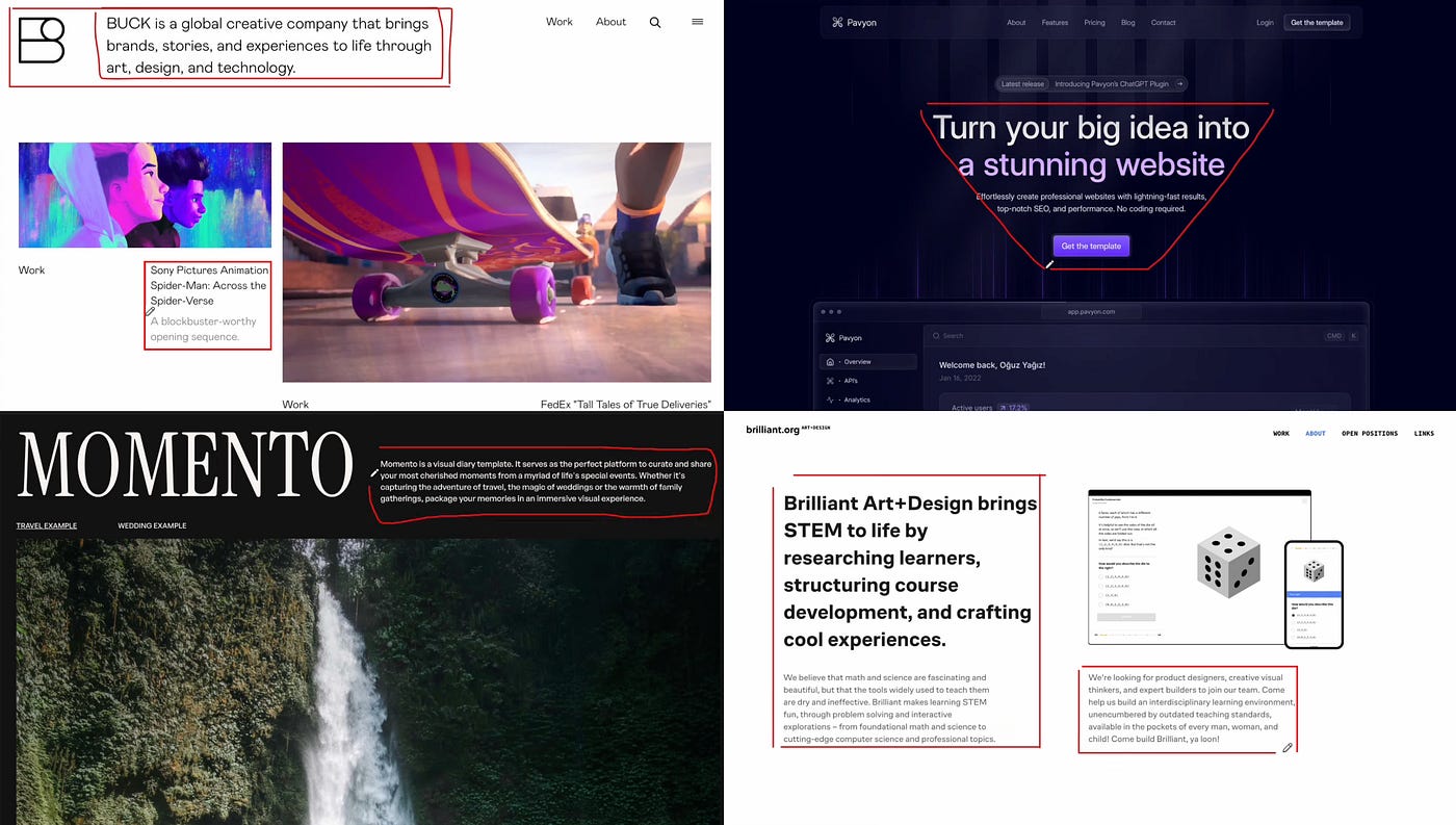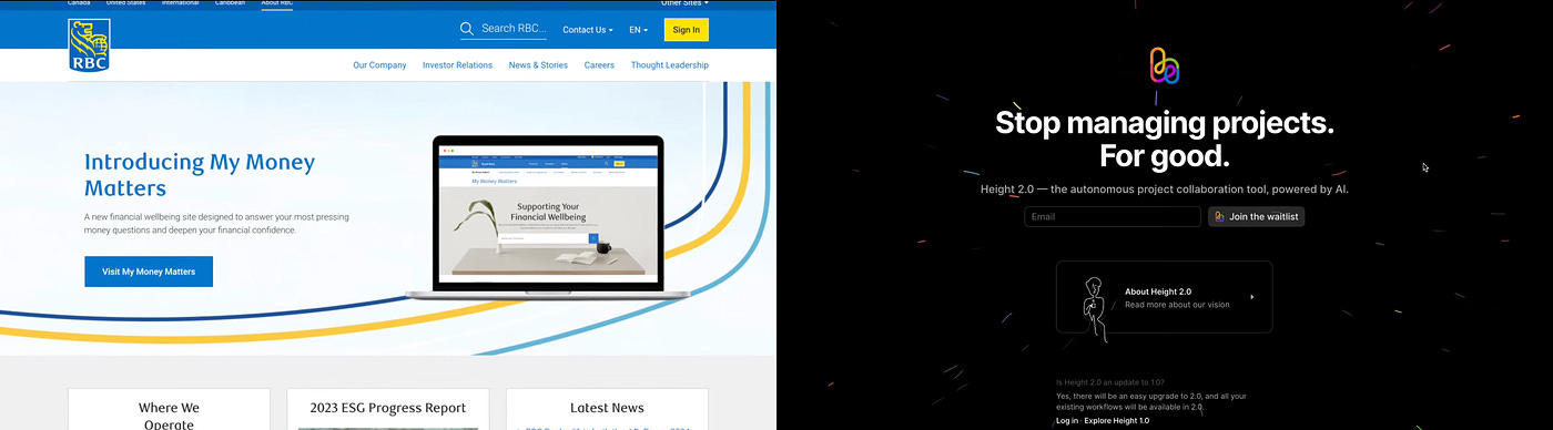 The colors: if you’re looking at real estate sites, or something sophisticated and expensive-looking, you’ll likely see the color gold 👑. If it’s technology or artificial intelligence things, you might see more vibrant colors like purple🦄.